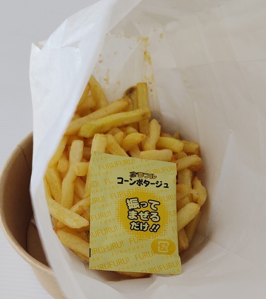 コーンポタージュ味の粉末を袋に入れ、振り混ぜてください。